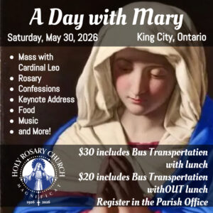 Mark your calendars: The Archdiocese of Toronto invites you to A Day With Mary on Saturday, May 30, 2026 at Villanova College in King City.